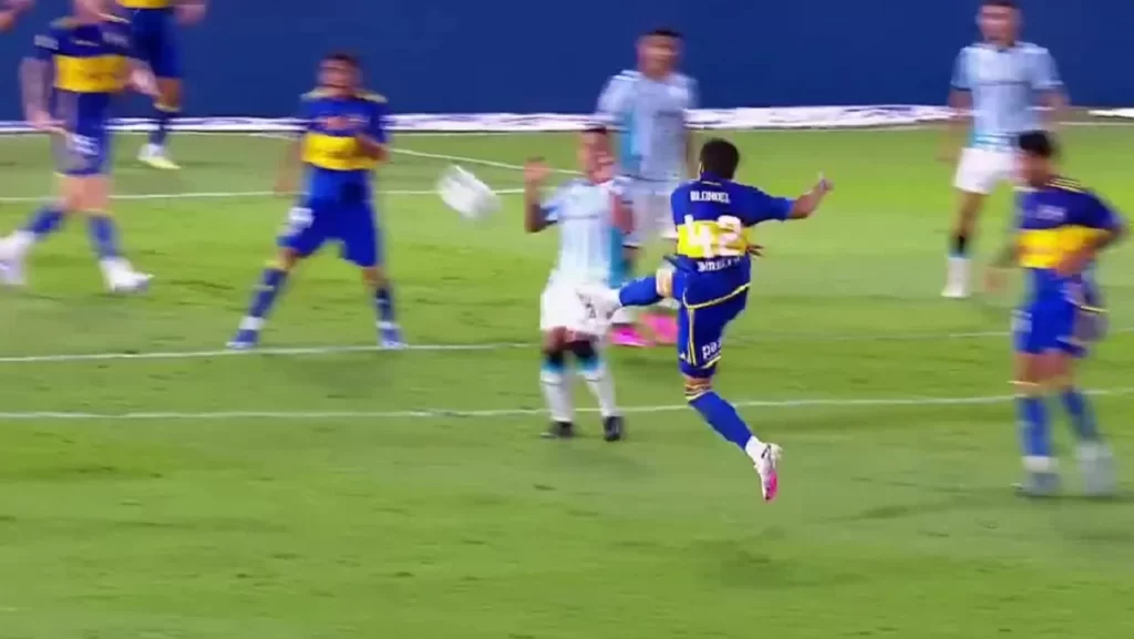 El lateral derecho Lucas Blondel abrió el marcador del partido que Boca y Racing igualaban 1 a 1 en el estadio La Bombonera y le estaba dando el triunfo parcial en el marco de la décima fecha de la Copa de la Liga.